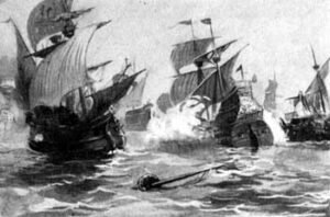 There came a day’s calm; hunger and thirst were raging on board the ships; their store of water was entirely spent. Seeking to relieve their desperate situation, the Spaniards sent some boats on shore to beg supplies. They prayed piteously, willing to pay any amount of money but were unable to obtain any. The natives knew that the Spaniards had lost the day and should they comfort and assist the enemies of Elizabeth, they would be held answerable.
