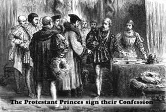 On the morning of June 23rd, the Protestants met at the apartment of the Elector of Saxony. Originally, there were seven princes and the representatives of two German cities who signed their names to the confession—all laymen. This, however, was significant, as the Church of Rome had practically defined the church as the priesthood. This was not a body catholic, but a caste, or third party, that stood between God and the laity, conducting all dealings between the two. Now, however, as we see the church reviving and the spirit of new life energizing it in the Protestant movement, we see that once again, as in apostolic times, the church is once again a complete society.