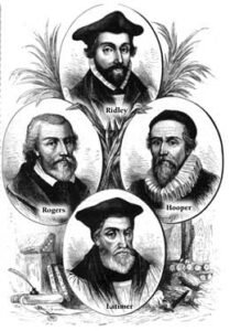 With the year 1555, the stake returned to England. Secret informers were appointed in each district to report on all who did not attend the mass or who otherwise failed to conduct themselves as good Catholics. Among the first victims to suffer for their faith were Rogers and Hooper. The men who were burned during Mary’s reign died mainly because of their denial in the belief of transubstantiation—the actual presence of the body of Christ in the Lord’s Supper. The question was direct and there was no reasoning the matter. “What sayest thou?” was the question put to each of them. If in answer they said “flesh,” they were acquitted; if in reply they said “bread,” they were condemned to be burned.