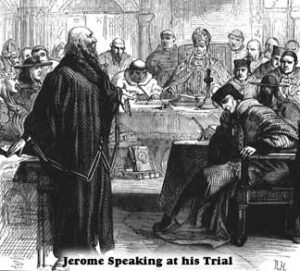 At his earlier hearing, Jerome had subscribed to the justice of Huss’s condemnation; and at his second hearing he bitterly repented of this wrong, done in a moment of cowardice. Having known Huss since childhood, he stated that he knew him to be of a most excellent character. He continued, “Of all the sins that I have committed since my youth, none weighs so heavily on my mind, and causes me such poignant remorse, as that which I committed in this fatal place, when I approved of the iniquitous sentence recorded against Wycliffe, and against the holy martyr John Huss, my master and my friend. . . . You condemned Wycliffe and Huss, not because they shook the faith, but because they branded with reprobation the scandals of the clergy—their pomp, their pride, and their luxuriousness.” Ibid.