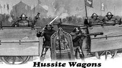 One contributing factor to his brilliant successes was his manner of arranging his defense. The wooden wagons were linked to one another by strong iron chains, and, ranged in line, were placed in front of the army. This fortification, ranged in the form of a circle, at times enclosed the whole army. Behind this first rampart rose a