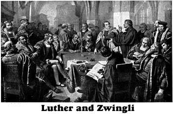 There had already been an exchange of writings between Luther and Zwingli on the question of the Lord’s Supper. “Those from the pen of Luther were so violent that they left an impression of weakness. The perfect calmness of Zwingli’s replies, on the other hand, produced a conviction of strength. Zwingli’s calmness stung Luther to the quick. It humiliated him. Popes and emperors had lowered their pretensions in his presence; the men of war, whom the Papacy had sent forth from the Vatican to do battle with him, had returned discomfited. He could not brook the thought of lowering his sword before the pastor of Zurich. Must he, the doctor of Christendom, sit at the feet of Zwingli?” Wylie, History of Protestantism, book 9, chapter 16.