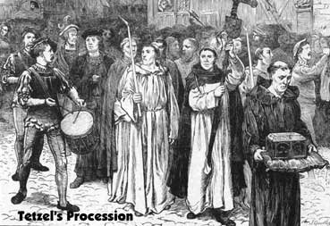 The poor, deluded people, quite unhappy at losing both their money and, at the same time, their hope of heaven, quickly found Tetzel and informed him that a monk in Wittemberg was warning the people against his indulgences. Tetzel was enraged. Kindling a fire in the marketplace of Juterbock, he indicated what would be done to anyone who should presume to obstruct his noble work, declaring that the pope had given him authority to commit all such heretics to the flames.