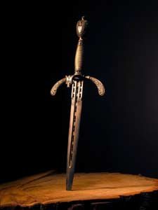 Next morning Grimez came down as usual to build the morning fire. Seeing a window open, he exclaimed in amazement. Stephanie flew down the stairs. They scrutinized the window and lock, but nothing was broken. Something had simply opened it. Puzzled, they searched for anything that might have been disturbed. Suddenly Stephanie cried out in terror. “Oh, look!” There on the table, where the old family Bible always rested, lay a gleaming dagger, and the Bible had vanished. Stephanie sank in a chair, half fainting.